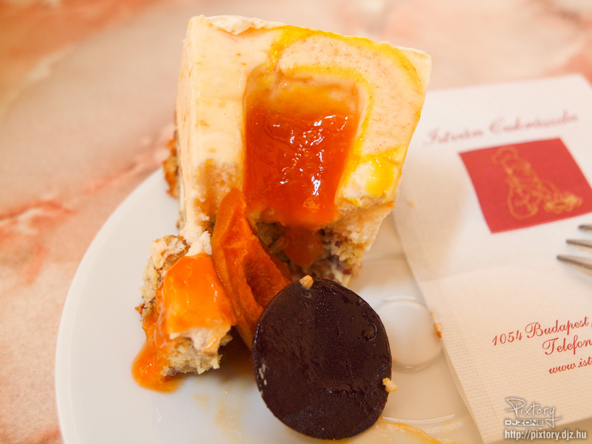 A baracklekvár szokásosan durván fejbevágóan édes, a hab visszafogottan semmilyen, a tortaalap szokatlan, mondhatni desszert idegen.
