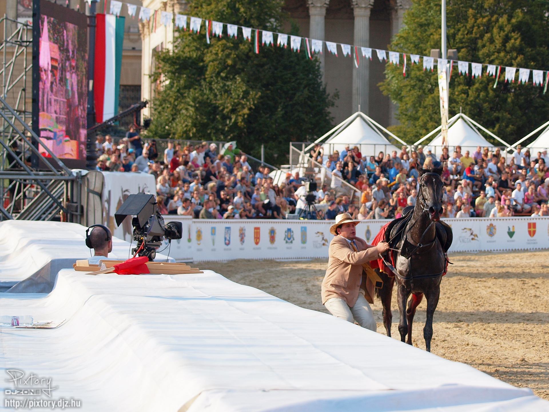 A tisztelet kör közben sikerült megfogni ismét az elszabadult telivért, ekkor már teljesen véres volt a bal oldala. A műsorvezetők nyugtattak minket, hogy csak súlyosnak tűnik a sérülés, de az ország legjobb orvosai sietnek a ló segítségére, stb.