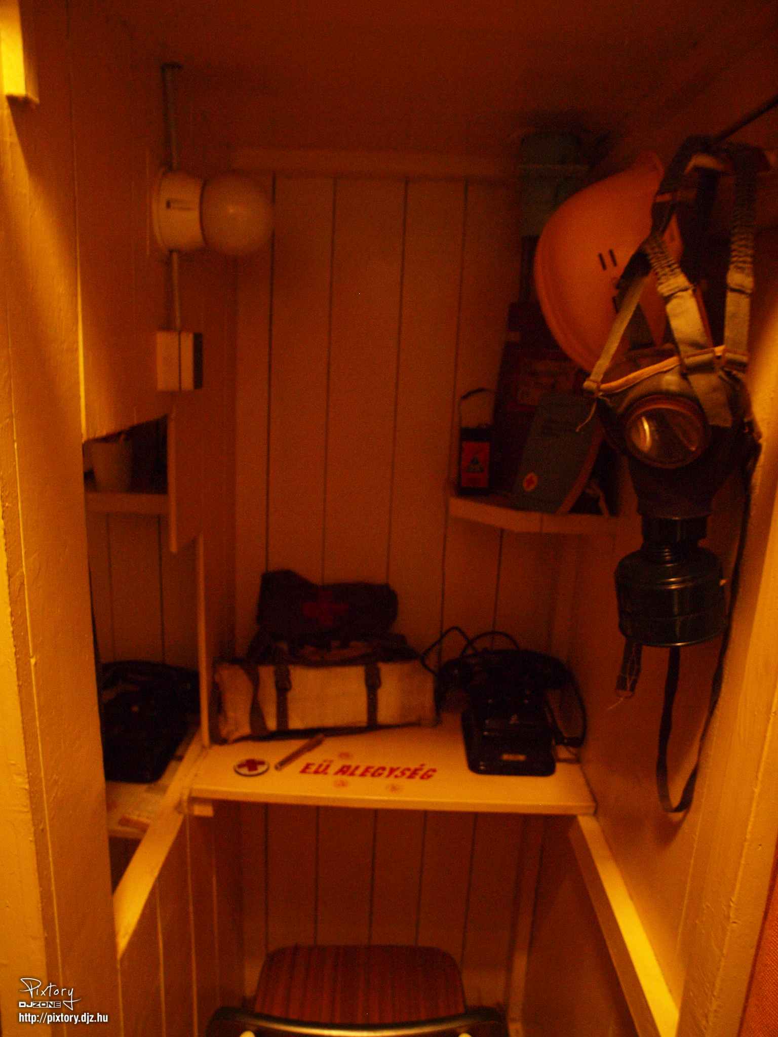 A bunkerbe lépést korhű körülmények között ejtettük meg, vagyis lekapcsolt villanyok és padlón lévő út jelölő fények segítségével botorkáltunk be. Itt megismerhettük az óvóhelyek létrejöttének történetét a környéken.