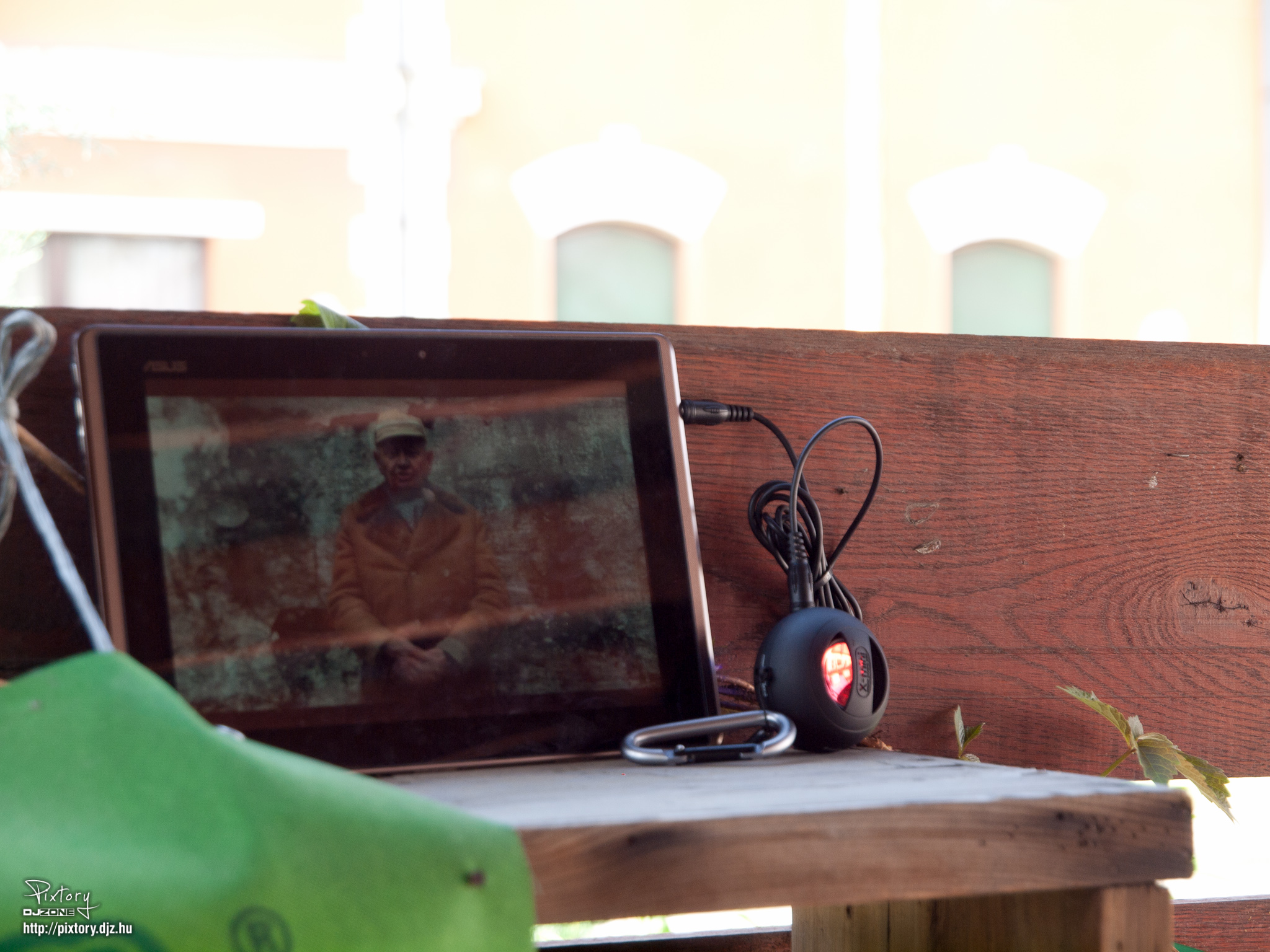 A magával hozott is tableten, és az azt kiegészítő külső hangszórón gyakran mutatott saját készítésű és gyűjtésű filmekkel mutatta be az eseményeket.